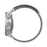 Модель представлена в сером цвете с нейлоновым ремешком. Помимо часов в комплект входит кабель для зарядки.