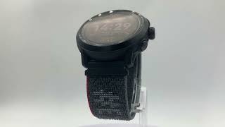 Модель представлена в черном цвете с нейлоновым ремешком. Помимо часов в комплект входит кабель для зарядки.