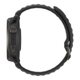 Модель диаметром 46 мм, представлена в черном цвете с силиконовым ремешком. Помимо часов в комплект входит адаптер для зарядки.