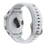 Модель диаметром 46 мм, представлена в белом цвете с силиконовым ремешком. Помимо часов в комплект входит адаптер для зарядки.