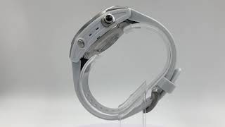 Данная модель представлена в серебристом цвете с белым силиконовым ремешком.