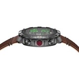 Модель представлена в титановом корпусе с кожаным коричневым ремешком. Помимо часов в комплект входит кабель для зарядки и синхронизации, а также силиконовый ремешок черного цвета.